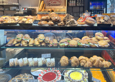 Für den Hunger zwischendurch bieten wir herzhafte Brotzeiten mit frisch gebackenem Brot aus natürlicher Herstellung sowie feine Snacks aus eigener Produktion. Wie in all unseren Filialen stehen echtes Handwerk, gemütliche Atmosphäre und herzliche Gastfreundschaft bei uns an erster Stelle.
